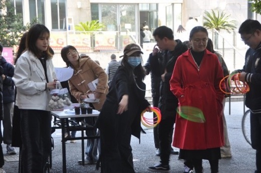 在積分互動區,購買愛心物品的師生可以憑借積分卡參與互動。環保知識問答、套圈等互動形式,得到現場師生的一致好評。