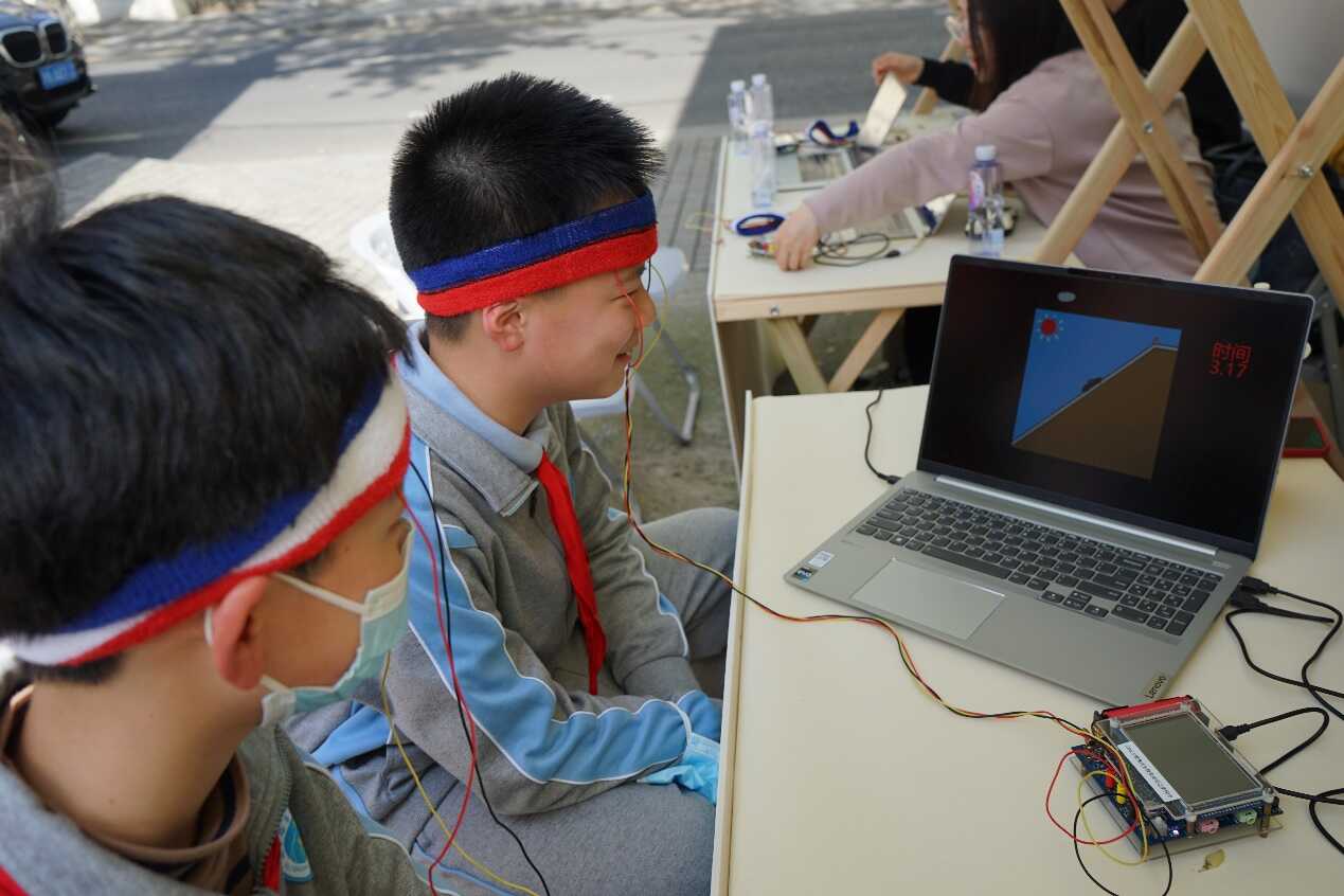 “腦智擘未來”科普市集聚焦腦科學領域,通過僵尸跳舞、腦電對抗、力量召喚閃電、斑馬魚的裙擺、腦電協作、眼控避障、腦功能水平測試等七個生動有趣的實驗,讓來自位育初中、建襄小學、徐匯一中心、高安一小的中小學生,以及街道的居民,初窺大腦的奧秘。系列實驗由腦智卓越中心科普協會根據日常科學實驗原創制作而成,實驗充分結合公眾對社交化、娛樂化、游戲化等科普內容的偏好,使得曾經“高冷”的專業操作,以更多元、更新潮的方式綻放科學的魅力。