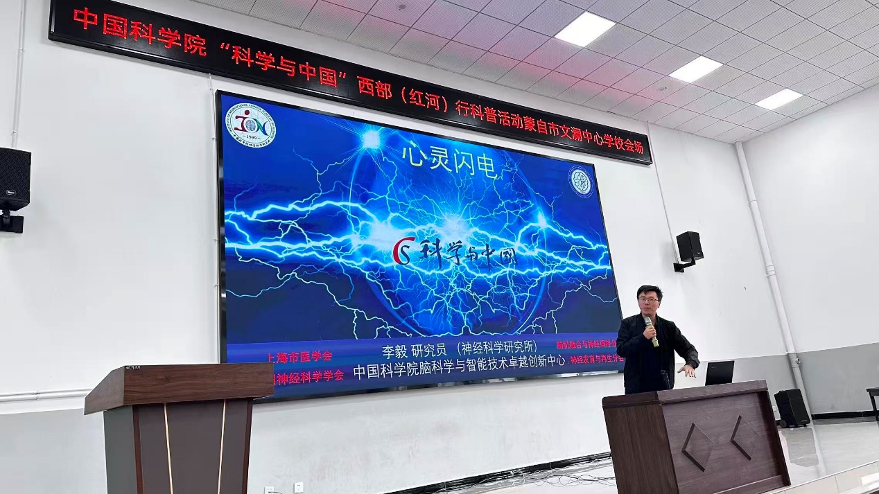 11月3日至4日,李毅研究員參與上海分院組織的“科學與中國”西部行科普活動,歷經十小時路程遠赴紅河,將優質科學資源送達西部青少年身邊。他為蒙自市惠民小學、文瀾中心學校帶來“大腦中的體育課”與“心靈閃電”科普報告,從腦控機械臂的原理講到光遺傳學的前沿應用,并結合團隊突破國外技術封鎖、自主研發無線植入腦機接口的真實案例,詮釋了科學家堅守報國的“硬核”精神,點燃了西部青少年探索科學的熱情。