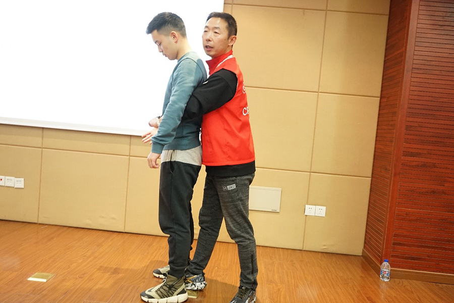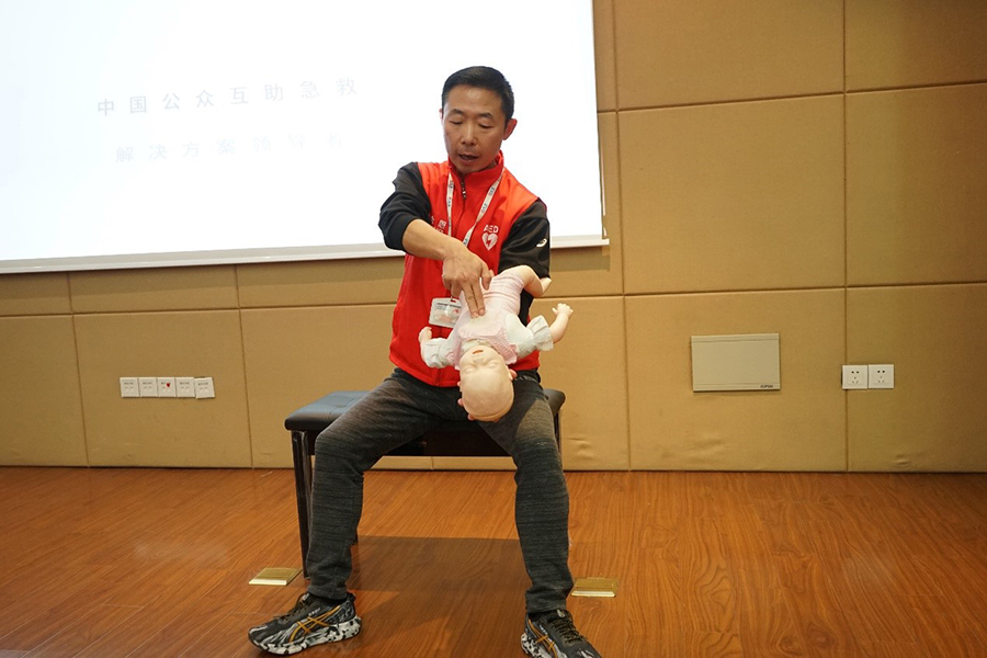 上海公眾急救互助系統(tǒng)全民CPR+AED培訓講師石峻為大家詳細講解并演練了心肺復蘇法、自動體外除顫儀AED使用方法、癲癇正確救助法、氣道阻塞快速救治法,以及救助過程中需要注意的問題和經常出現(xiàn)的錯誤。培訓師指出,我國每年心臟驟停的患者有50多萬,其中70%以上的意外發(fā)生在院外,一旦心跳停止,4分鐘后腦細胞開始不可逆損傷,超過10分鐘后搶救成功率微乎其微;在專業(yè)人員不能到達、時效最重要、救治最薄弱的早期時段內開展救助尤為重要。