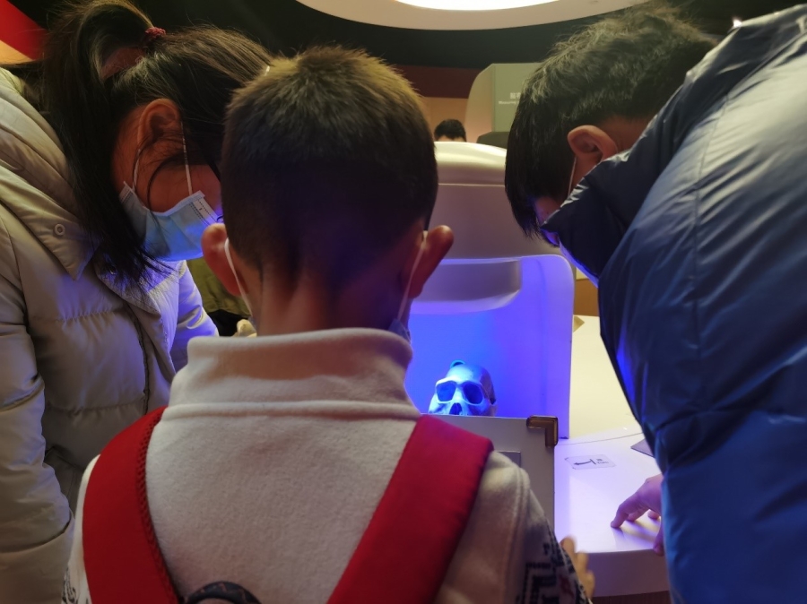 物種在漫長的歲月里不斷演化,終于生物們開始具有認識到自己是生物的能力,換句話說,智慧。孩子拉著志愿者用CT機掃描比較不同古人類的腦容量大小,以一窺這漫長的智慧長河。