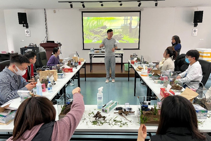 具有藝術觀賞性的水藝生態景觀可有效降低工作繁忙或壓力巨大人士的焦慮水平,誘發放松狀態,具有一定的治愈價值。2022年3月4日,中國科學院腦科學與智能技術卓越創新中心工會生活品質協會舉辦了“水族造景DIY”培訓,活動邀請了專業的水藝生態景觀陸信杰老師給大家講解示范。