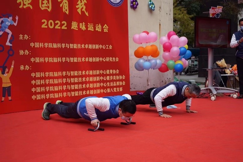為深入學習宣傳貫徹黨的二十大精神,積極落實科教興國、人才強國、健康中國的戰略,培養德智體美勞全面發展的社會主義建設者和接班人,12月8日,中國科學院腦科學與智能技術卓越創新中心工會舉辦了2022年“強身健體 強國有我”趣味運動會,活動由研究生會協辦,健身協會、健步走協會、生活品質協會和第八黨支部聯合承辦,舞蹈協會、攝影協會參與承辦。上海分院工會常務副主席、黨建工作部主任朱熊,腦智卓越中心副主任(主持工作)杜久林,黨委副書記(主持工作)、副主任王燕,副主任王佐仁、孫衍剛出席了運動會。黨委副書記、紀委書記、工會主席王茂華主持了運動會開幕式。