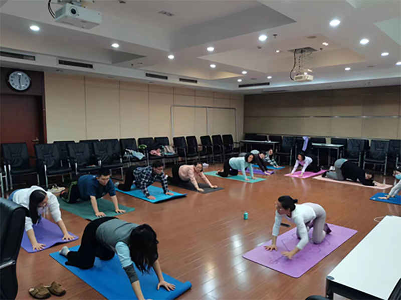 通過自身體位訓練,有效糾正了部分職工身體姿態(tài)長期存在的問題,塑造了形體,增強了力量,關節(jié)和肌肉的僵硬程度得到顯著改善,身體柔韌性普遍得到提升。伴隨著輕松愉悅的音樂,職工們通過呼吸控制練習,緩解工作生活中的壓力與焦慮,身心獲得平靜和放松。