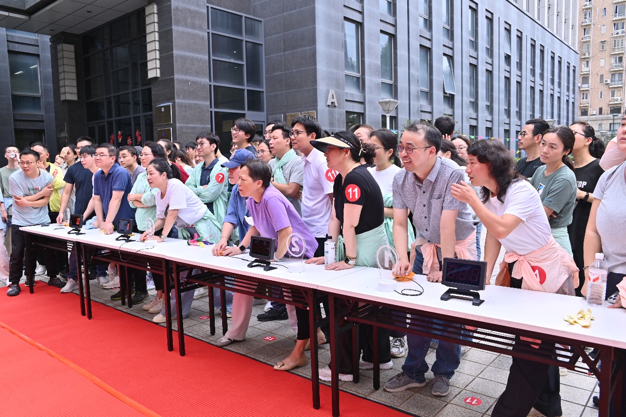 本次運(yùn)動(dòng)會(huì)共有24支參賽隊(duì),每支團(tuán)隊(duì)由10人組成,共240名職工、博士后和研究生積極報(bào)名參加了比賽,科研、管理和支撐人員紛紛交叉組隊(duì)。正式比賽前,各參賽隊(duì)發(fā)揚(yáng)“更高、更快、更強(qiáng)”的體育精神,開(kāi)展了熱火朝天的練習(xí)。