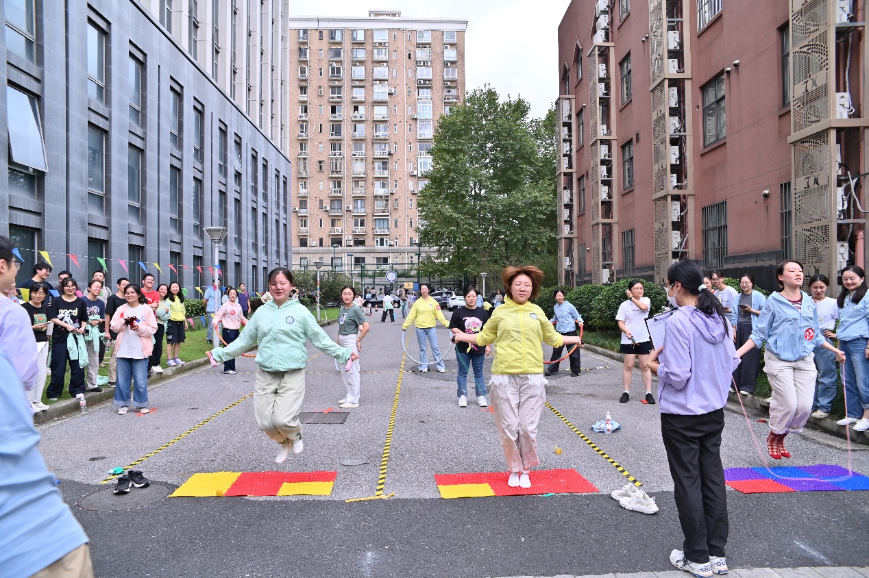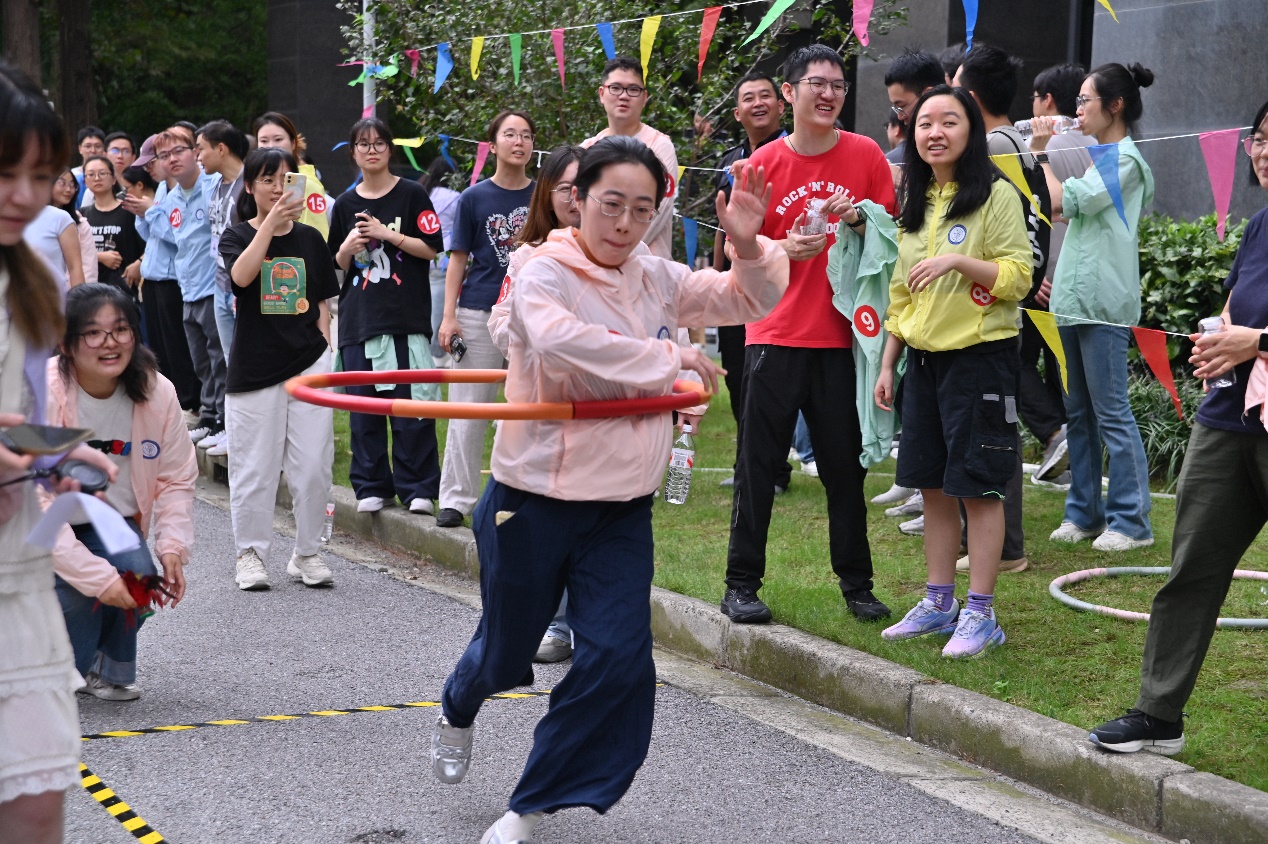 趣味接力比賽環(huán)節(jié)包含俯臥撐、指壓板跳繩、踢毽子、呼啦圈前進(jìn)和投壺五項(xiàng)挑戰(zhàn),將趣味性、競(jìng)技性、協(xié)作性巧妙結(jié)合。選手們意氣風(fēng)發(fā),各顯神通,以速度拼距離,幾乎每支隊(duì)伍都在項(xiàng)目里拼出了新高度。