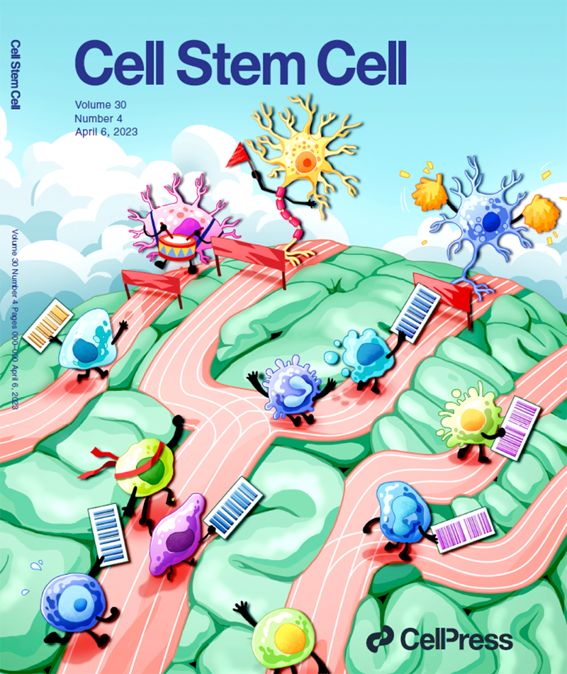 2023年3月18日,《Cell Stem Cell》期刊以封面文章的形式在線發(fā)表了中國科學院腦科學與智能技術卓越創(chuàng)新中心(神經(jīng)科學研究所)、神經(jīng)科學國家重點實驗室陳躍軍研究組題為《人神經(jīng)分化過程中跨時間段的克隆譜系追蹤》的研究論文,該研究通過建立能夠跨分化階段高通量譜系示蹤新技術-SISBAR,解析了人多能干細胞分化為人腹側中后腦神經(jīng)細胞的單細胞譜系,發(fā)現(xiàn)了許多新的譜系分化路徑和分子調(diào)控機制,研究進一步展示了基于SISBAR技術的新發(fā)現(xiàn)在改進帕金森癥細胞治療策略中的應用。SISBAR技術有望為干細胞研究帶來新的突破。