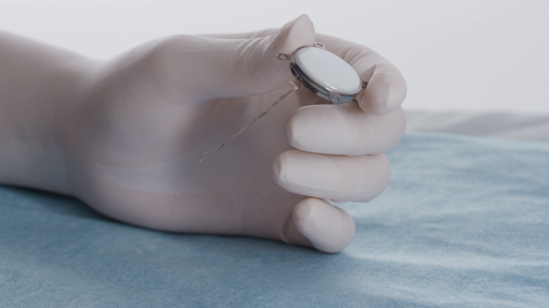圖4:植入體直徑26mm、厚度不到6mm,是全球最小尺寸的腦控植入體,僅硬幣大小